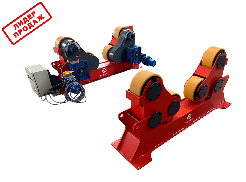 Вращатели роликовые самоцентрирующиеся ГРП-ВРСУ-Б-20 являются классическими вращателями с открытой зубчатой передачей и приводом на четыре колеса. Применяются для работы с изделиями большой массы до 20000 кг, с разнесенным центром тяжести.