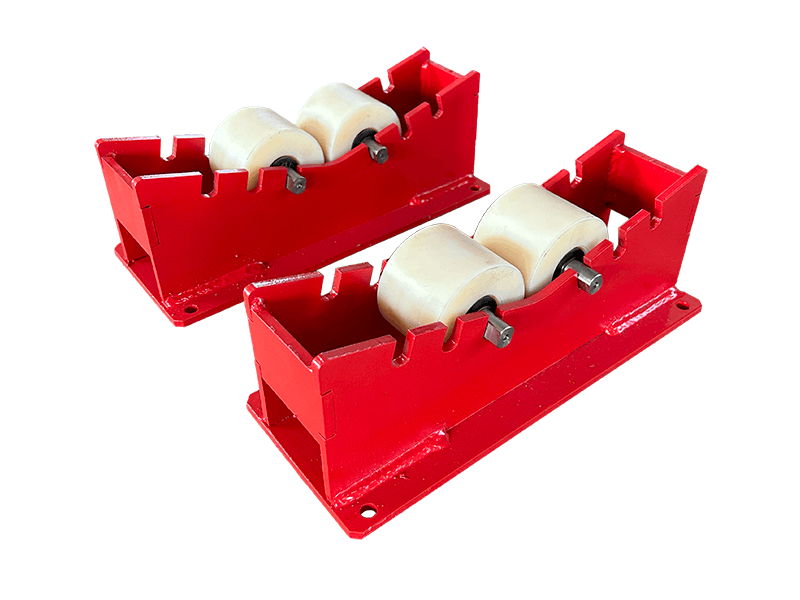 В опорах используются переставные ролики, которые позволяют работать с широким диапазоном диаметров труб, а полиуретановое покрытие позволяет добиться мягкости вращения. Закрытые подшипники качения обеспечивают легкость вращения изделий размещаемых на опоре.